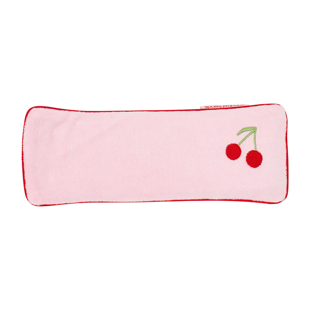 This Cosy Luxe Velvet Eye Rest Pillow, featuring a sweet cherry embroidery, helps to relax facial muscles and release stress and tension. Simply place the satin back over your eyes while lying down. The weight of the pillow filled with flaxseed & lavender will block out all light and spread a soothing pressure over your eyes and forehead.