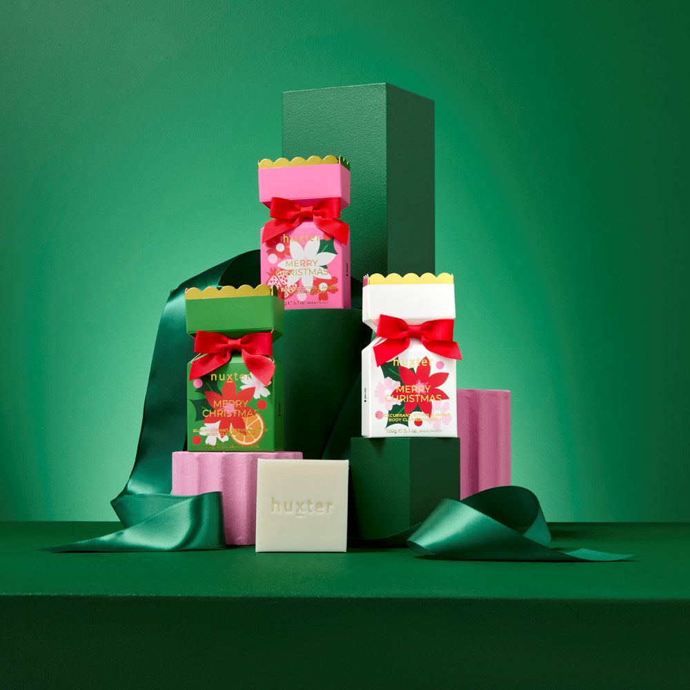 Say Merry Christmas with the Huxter Bon Bon. Each Bon Bon contains - 1 x 150gm Soap - Blackcurrant, Citrus & Amber.