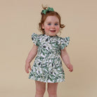 Soft and stretchy, our dresses are easy-care and very comfy for bub. The sizes up to and including size 1 come with a snap underbody to go over a nappy. Size 2 and up doesn't have the snap body feature. We have really focused on the details and ensured the dresses up to size 1 are short enough so that a baby can crawl and not trip over the skirt. Size 2 and over, when they're walking, is a bit longer.