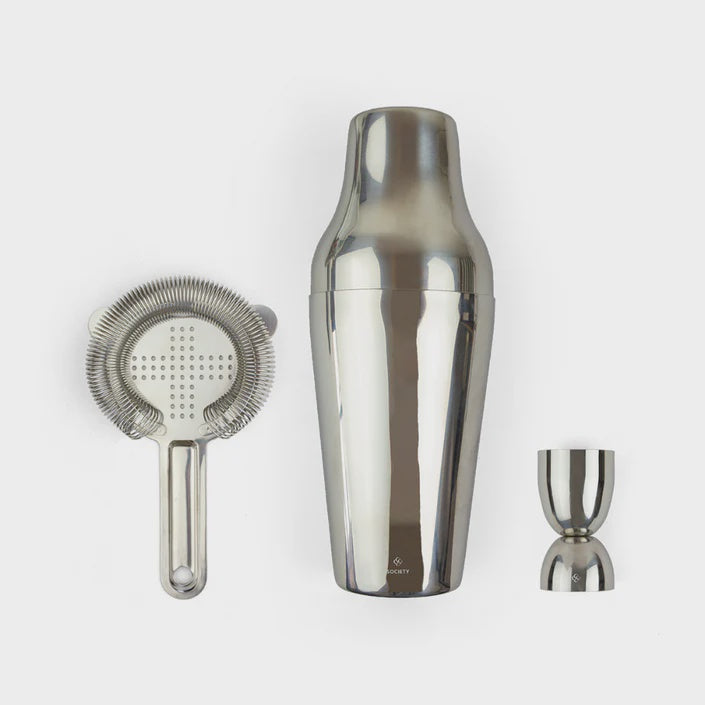 The stainless steel 600ml shaker is perfect to pour your next master cocktail. This set also includes a double jigger and strainer so you can impress your friends with your mixology skills in the comfort of your own home.