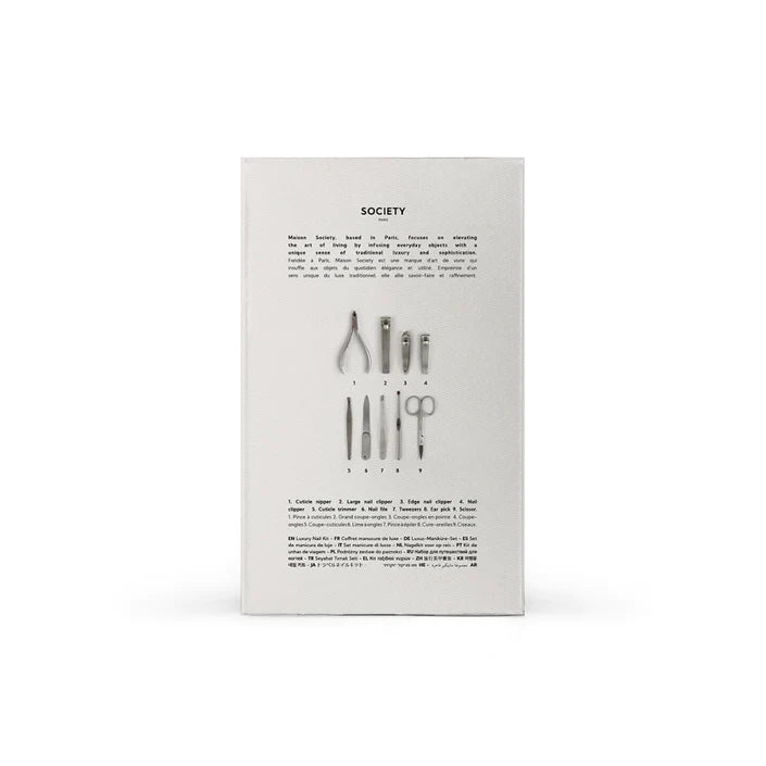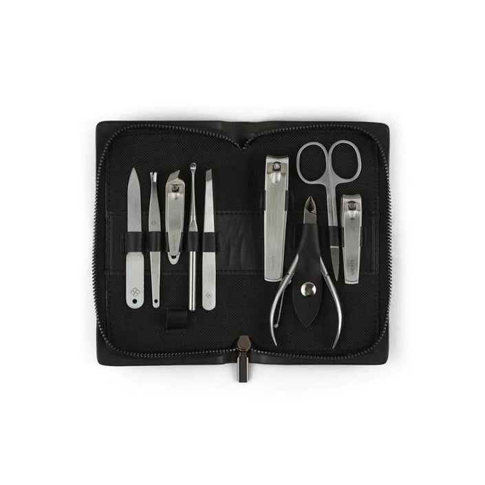 In the words of Christian Dior, "Grooming is the real secret of elegance." Society Paris's Luxury Nail Kit includes all the tools you need to keep your hands and feet in tip top shape and comes with a beautiful jet-black vegan leather case to store your tools together.