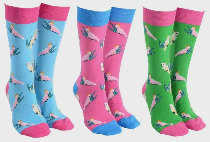 Bring a splash of Aussie colour to your feet with these vibrant Sock Society socks starring two of Australia’s most iconic and cheeky birds — the galah and the cockatoo! Bursting with pinks, whites, and bold attitude, these socks are perfect for bird lovers and anyone who loves a bit of wild Aussie charm.