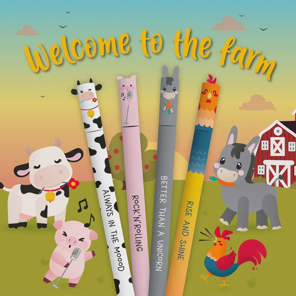 On the farm, everybody pitches in to get the job done! With the Set of 4 Erasable Gel Pens Farm Sweet Farm - Erasable Pen from Legami, you can bring a whole farmyard of animals to school with you inside your pencil case, where they'll be ready to help any time you make a mistake.