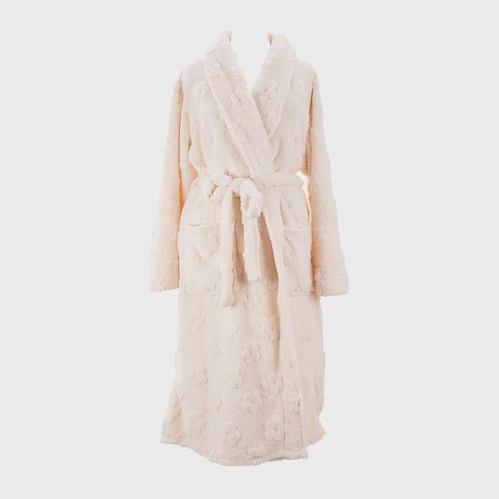 BATH ROBE - COSY LUXE EMBOSSED FLOWER CREAM