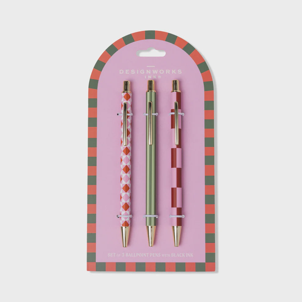 A Dopo Set of 3 Pens - Diamond, Stripe, Check