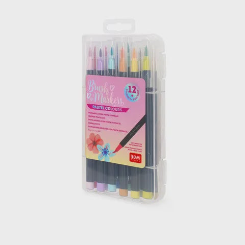 Unleash your inner artist with the Legami Set of 12 Brush Markers in Pastel tones. These vibrant tools contain a flexible nylon fibre brush tip that recreates the painting experience without the mess. By changing the pressure and inclination of the tip, you give free reign to your creativity. And thanks to the water-based ink inside, you can easily achieve a watercolour effect by blending it with a little water and using a brush to create beautiful pictures using the vibrant rainbow of colours.