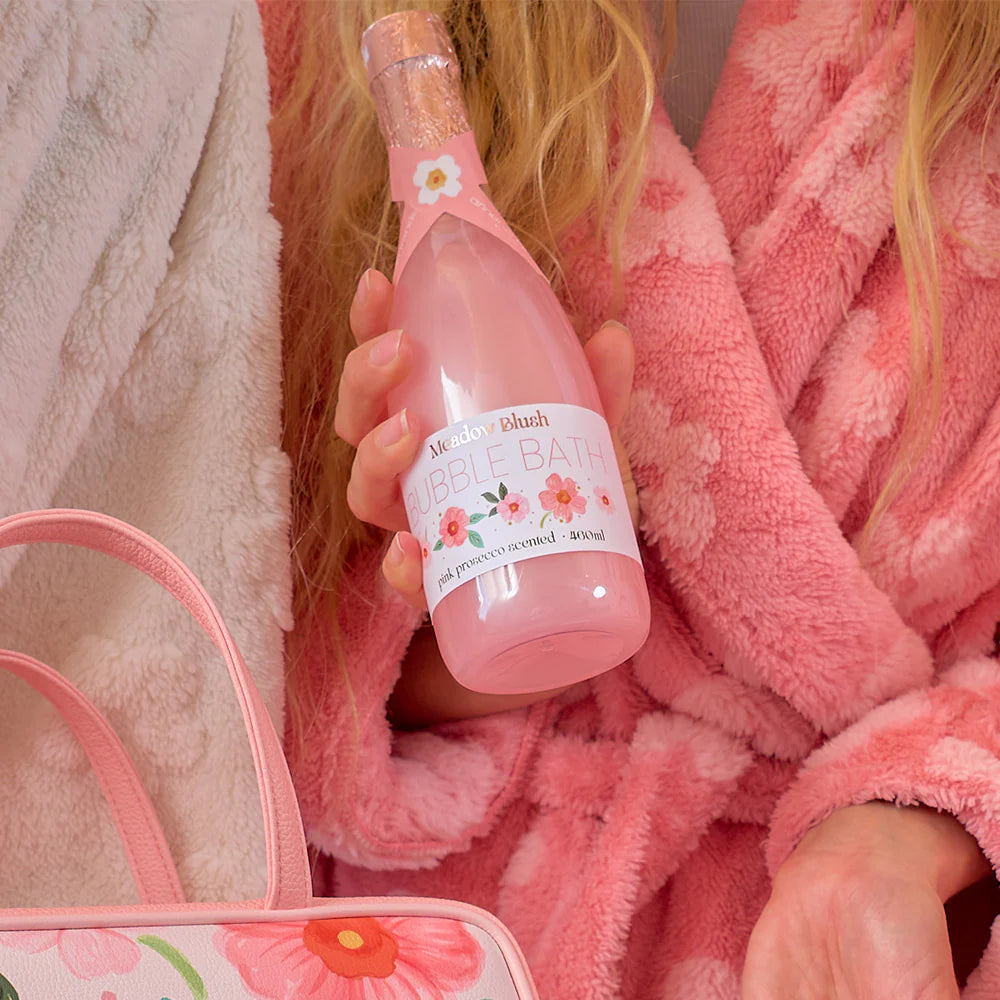 Unwind with the Meadow Blush Bubble Bath, elegantly housed in a champagne-inspired bottle. With a sweet floral, pink prosecco scent and a subtle pearlescent shimmer, transform your bath into a serene, indulgent moment of calm. Perfect for those seeking a luxurious and relaxing experience.