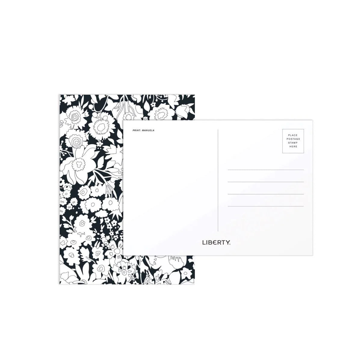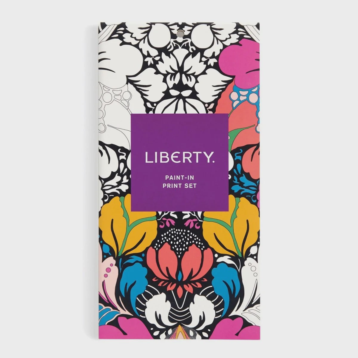 The Liberty Paint In Card Set includes a set of 6 cards featuring the iconic floral designs of Liberty London that can be painted using the 6 colours embedded into the top of the card.