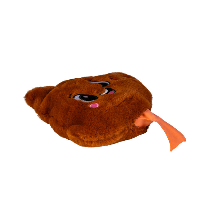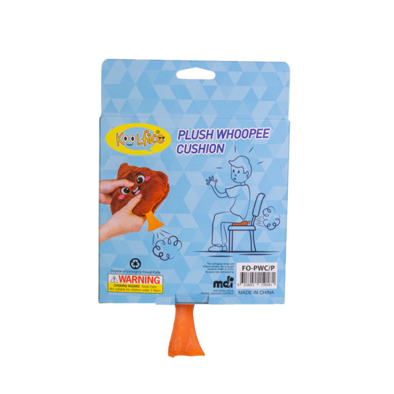 - Soft, huggable plush toy shaped like a classic whoopee cushion with a silly poo twist