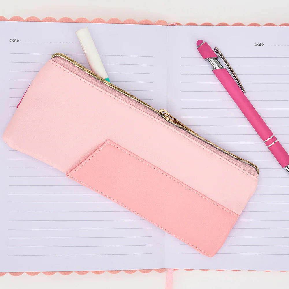 This scallop journal and pen pouch gift is the perfect mix of cute and cool—made for teens who love to write, doodle, plan or just keep their thoughts stylishly tucked away.