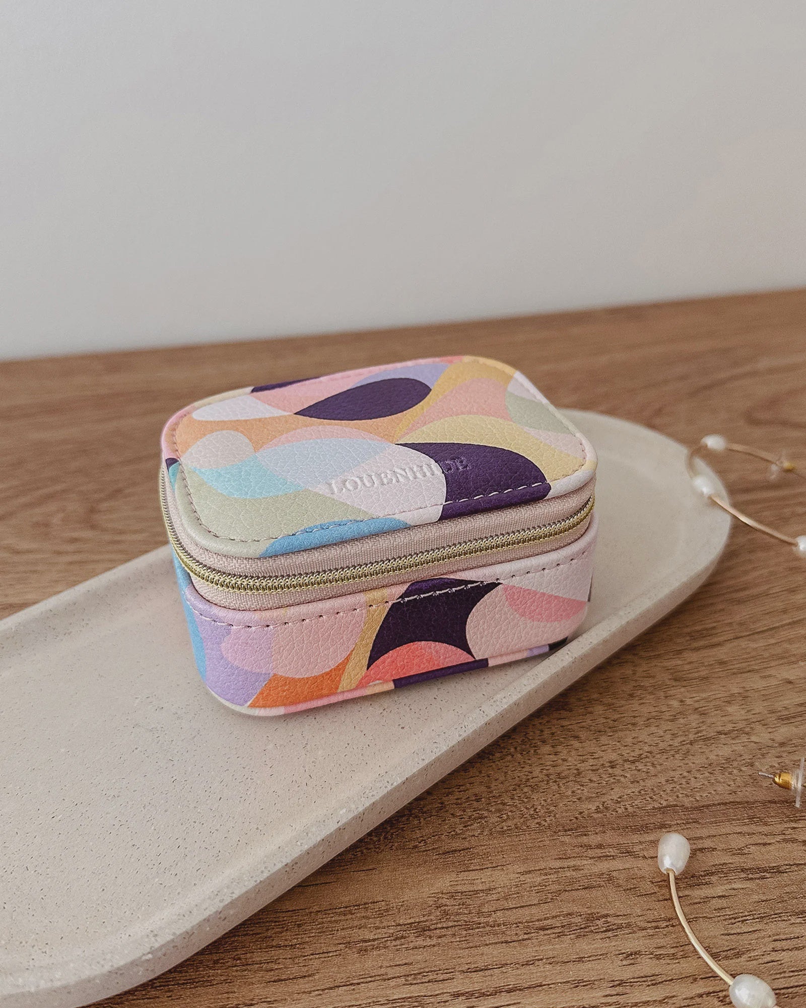 The Suzie Mosaic Jewel Jewellery Box is a sweet travel companion ready to store all of your rings, necklaces, bracelets, and earrings. Use every day and stow in your bag for on-the-go use, or pack for weekend adventures. Featuring three ring rolls, two compartments, and an elasticated slip pocket, your precious gems will be secured safely.