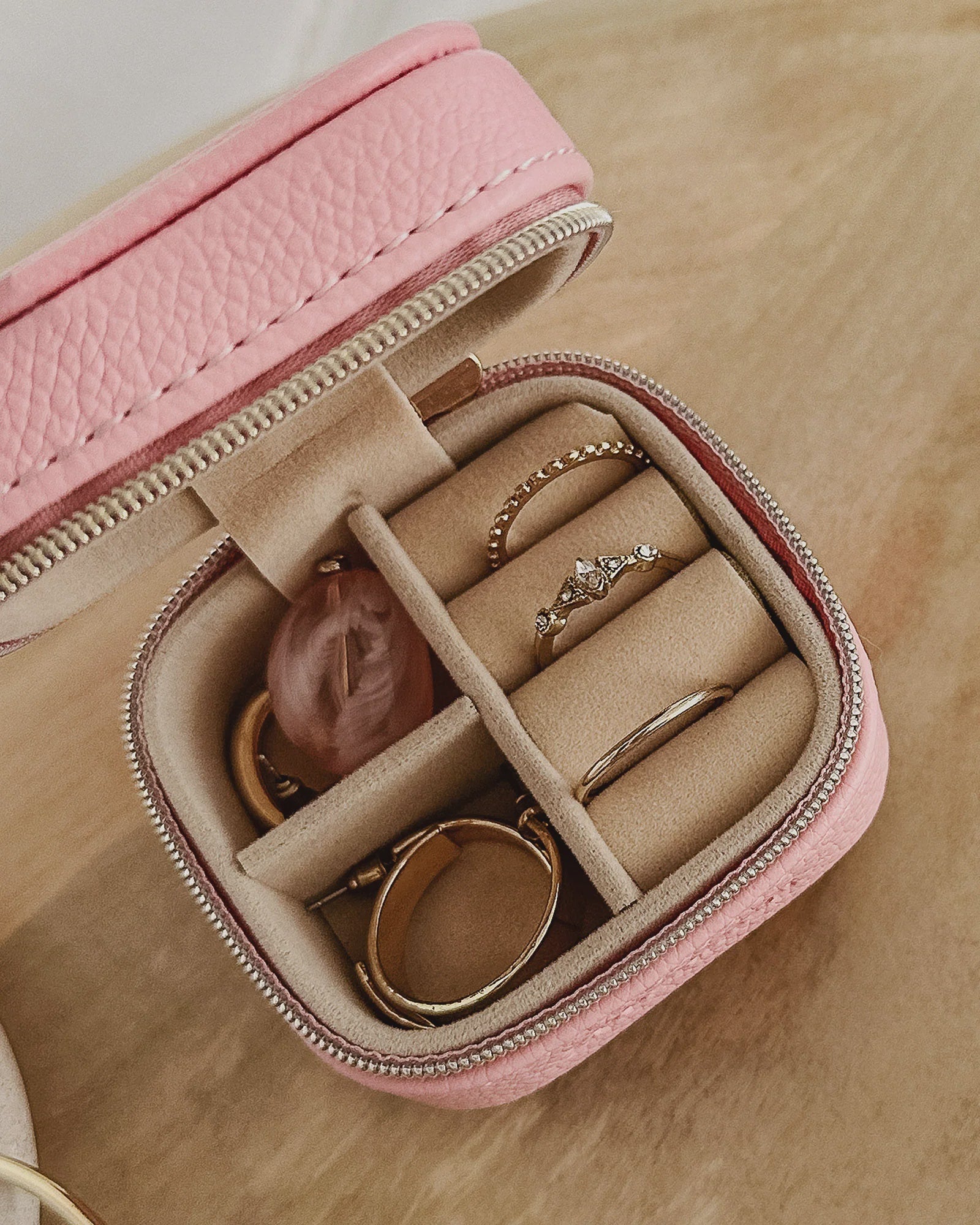 The Cass Deller x Louenhide collaboration brings the artist’s playful Dolce Far Niente print to life in the Tottie Pink Jewellery Box, a compact case designed for jewellery lovers on the move. Inspired by the relaxed charm of beachside living and the romance of Italian summers, this collection paints a story of coastal escapes and Mediterranean breeze, captured here in a vibrant printed top set against buttery soft vegan leather. Perfectly sized for travel, Tottie opens to reveal two internal compartments and a dedicated ring holder, thoughtfully designed to keep earrings, rings, and delicate treasures neatly organised and tangle-free. Whether tucked inside your tote or styled on your vanity, Tottie is the colourful finishing touch to your everyday routine, cheerful, functional, and ready to brighten every escape.