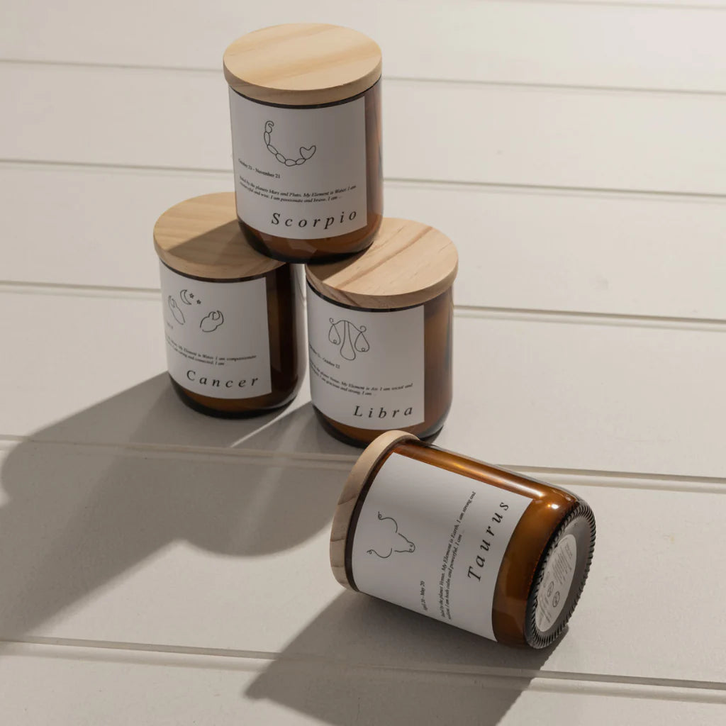 Embrace your Zodiac rituals with this calming and simple Zodiac Candle Range. hand drawn images, by us capture your true zodiac feelings. Keep for your own self care rituals or share the love with this thoughtful gift.
