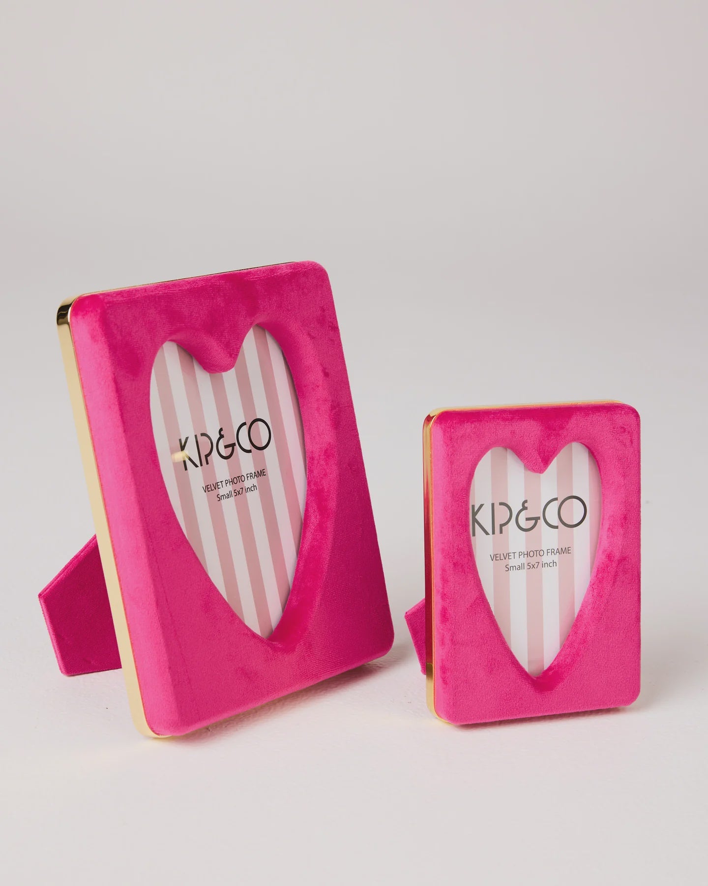 Frame your faves in something a little extra! Our Desert Pink Heart Velvet Photo Frame turns treasured moments into mini works of art, wrapped in lush, touchable velvet for that hint of fancy. Whether it’s a snap of your loved ones, your pet, or that one perfect holiday pic, this frame brings a pop of colour, texture, and fun to shelves, dressers or bedside tables. This dimensional beauty comes in a bold popping pink velvet with a love heart window frame.