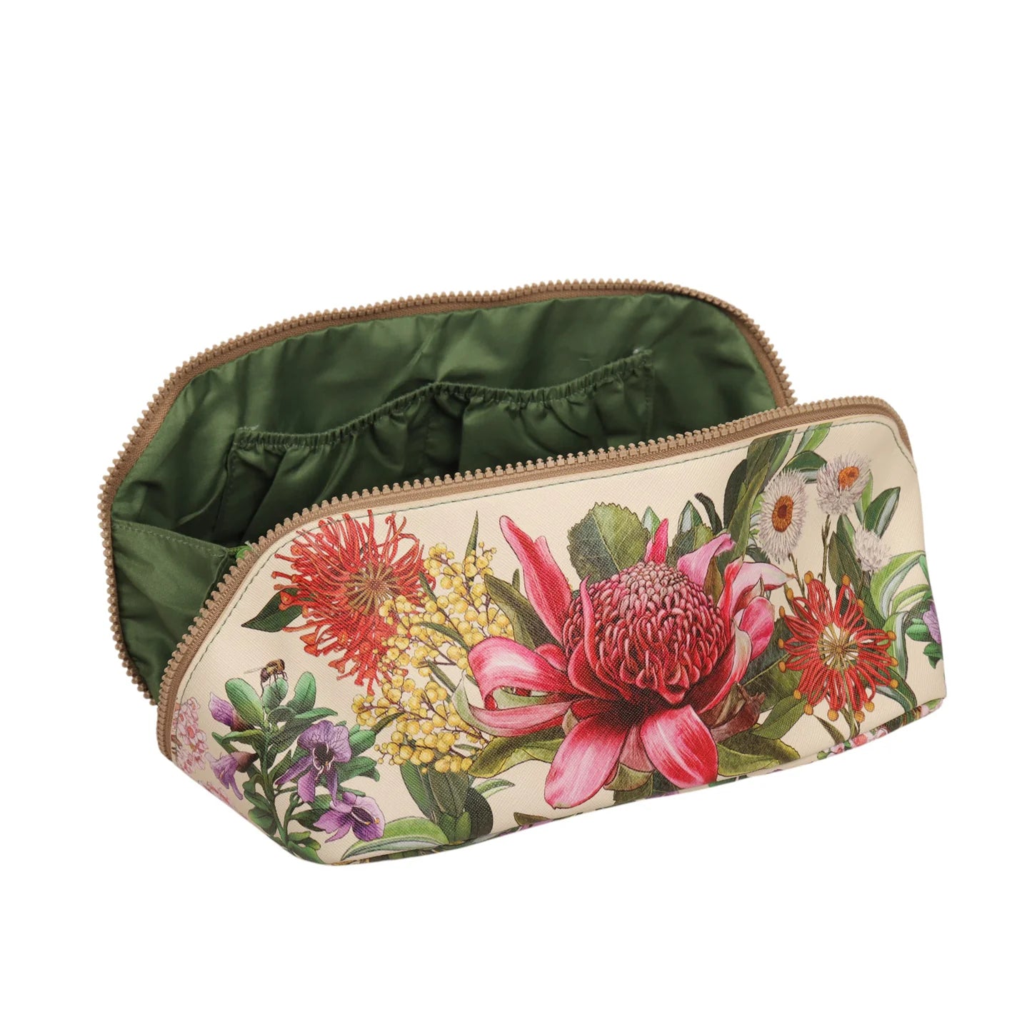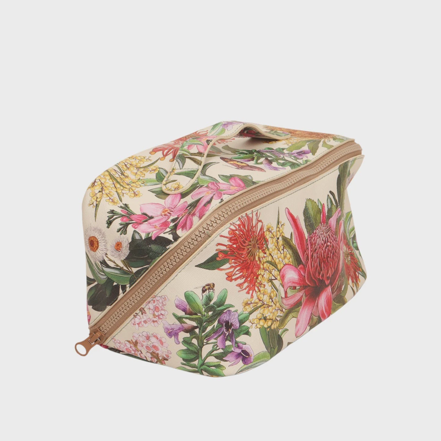 With stunning Australian florals printed on water-resistant vegan leather, our cosmetic case is your perfect travel companion for packing skincare and makeup on your next trip away.