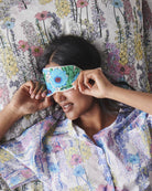 Let your peepers relax and reach the deepest of sleeps with our plush velvet eye masks. A sleep time necessity, the Tumbling Flowers Velvet Eye Mask features blooming blue flowers on a pale pink base.