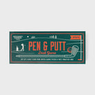 Practice your putting skills with the Pen & Putt desk game. This elegant desk set comes with a set of 3 Golf Club Pens, and inside the box is a mini pitch and putt practice green, complete with flagstick and 2 mini golf balls.