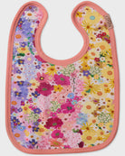 The Posie Lane Organic Cotton Bib is an essential for any budding little foodie. Perfect for those joyful moments of early food discovery, this bib is designed to make milk and mealtime a little less messy. Crafted from our softest organic cotton jersey, it's gentle on your baby's skin and easy to wash and wear on repeat. Whether they're sampling their first bites, dribbling their much-loved milk, or creating a messy masterpiece, this bib is your go-to for wiping cheeky chins and diving into all things delicious! Featuring a beautiful display of abundance, boasting a delightful explosion of colourful blooms, where every flower bursts with playful charm and rainbow-filled joy with plain peachy pink binding and reverse.