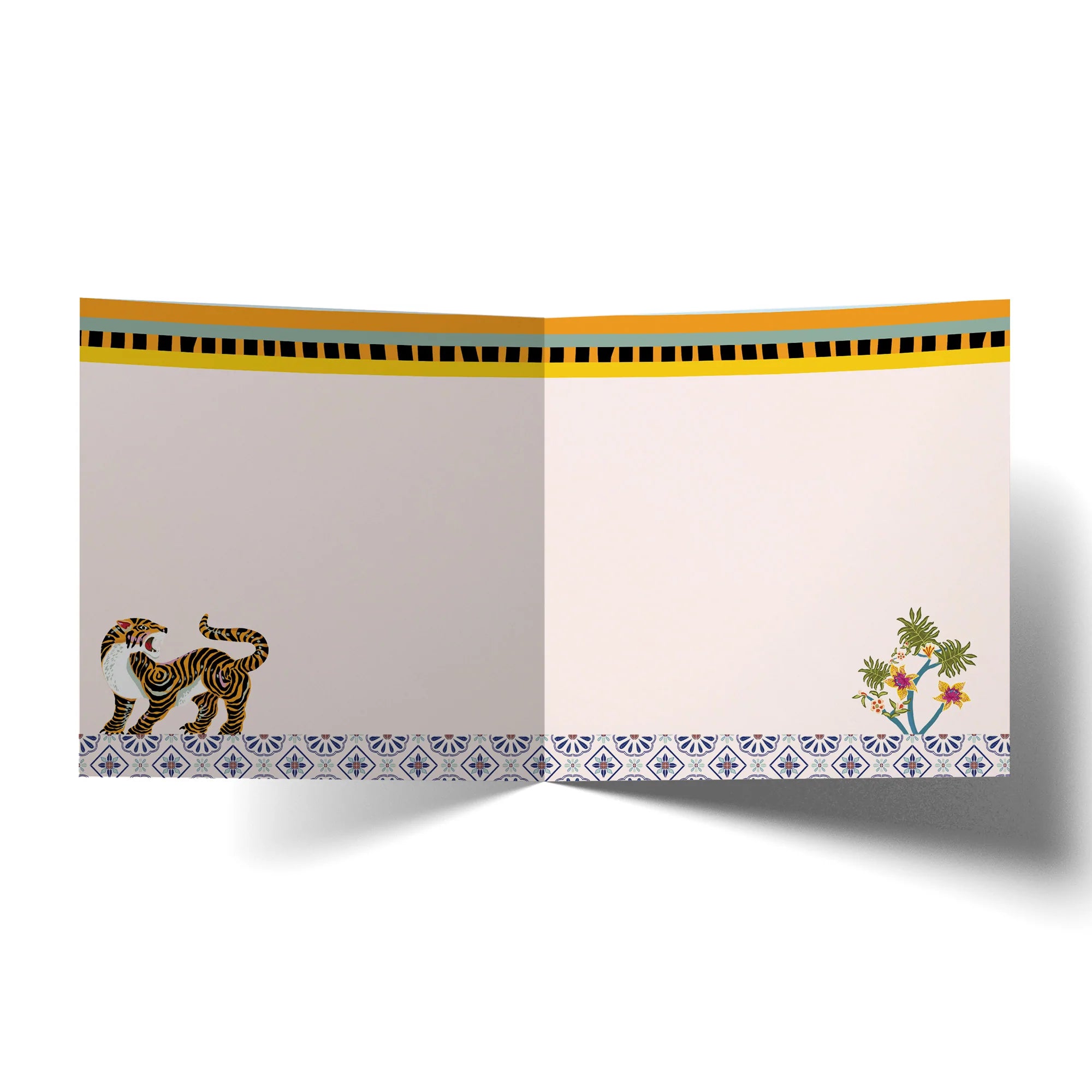 14 x 14 cm greeting card with illustrations inside and out. Includes a kraft envelope.