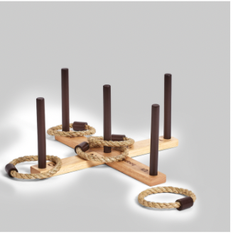 Hoopla is a simple but great fun traditional ring toss game for young and old. Our version is played on a timber cross with 5 pegs and has origins as a Victorian parlour game. Hoopla will provide a lot of laughs at your next barbecue or children's party. It is an excellent way to get the kids counting and adding in fives!