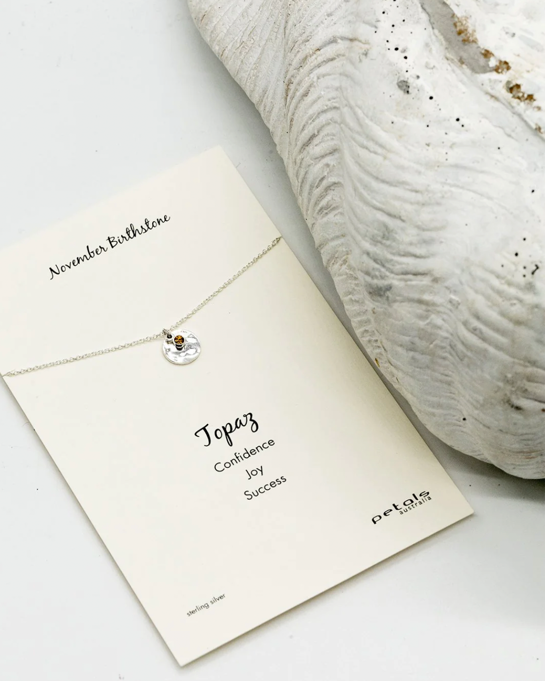 Celebrate November birthdays with a beautiful topaz necklace . Topaz comes in a rainbow of colors are known to have calming energies while bringing fortune and warmth to the wearer.