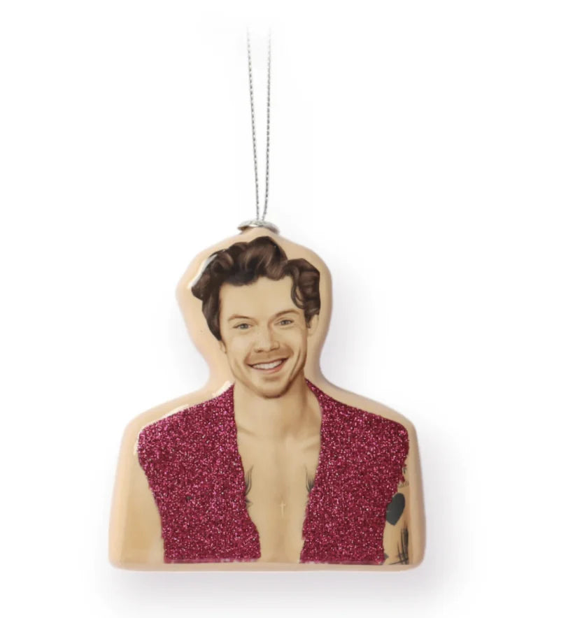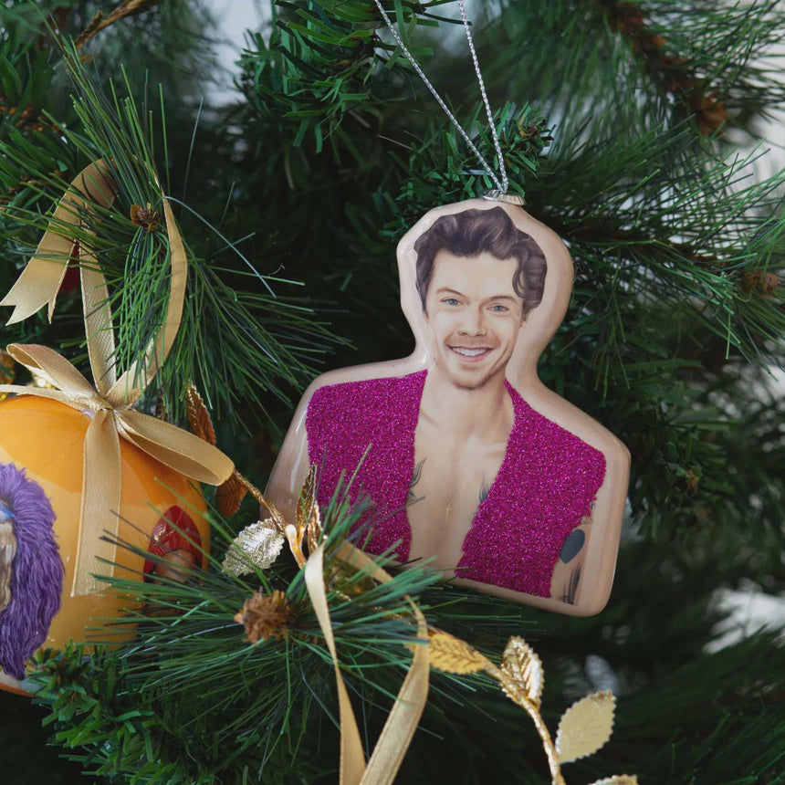 A must-have for fans of pop music today. This charming double-sided ornament features beautifully illustrated portraits of Harry Styles. Perfect for adding a touch of festive cheer to your tree, and most likely the closest you can get to having Harry for Christmas!