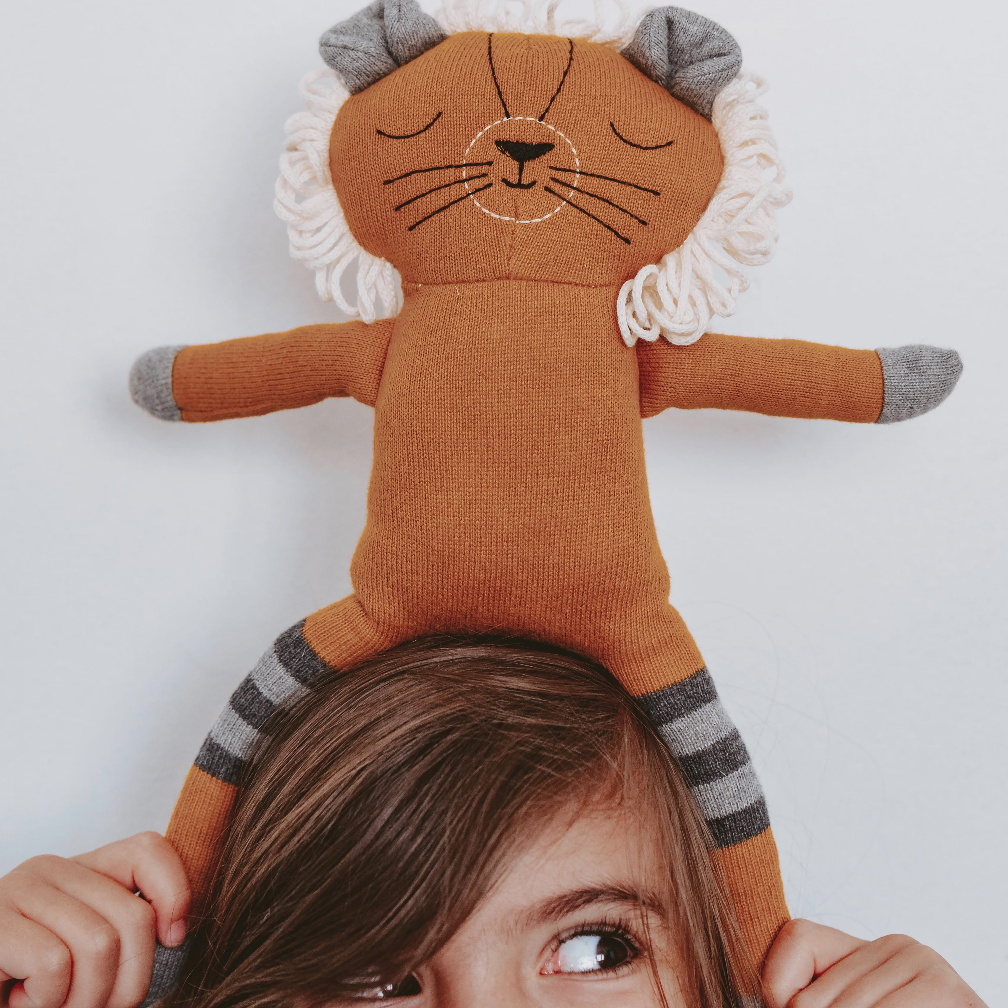 Archie the lion, made from super soft pure cotton in a delightful mustard color, he is perfect for snuggling.