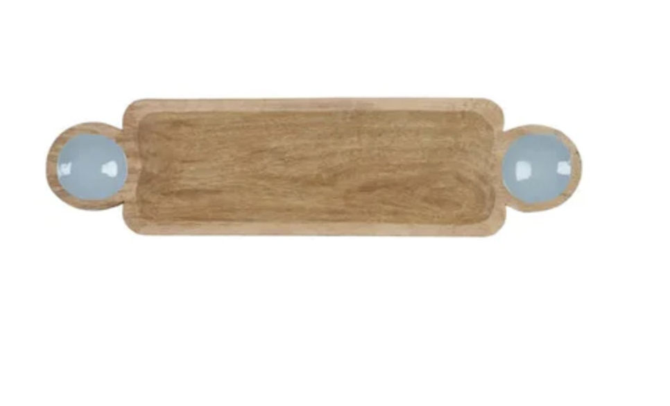 The Handcrafted Mango Wood & Enamel Tray will make a wonderful addition to your table and a great gift for family and friends.