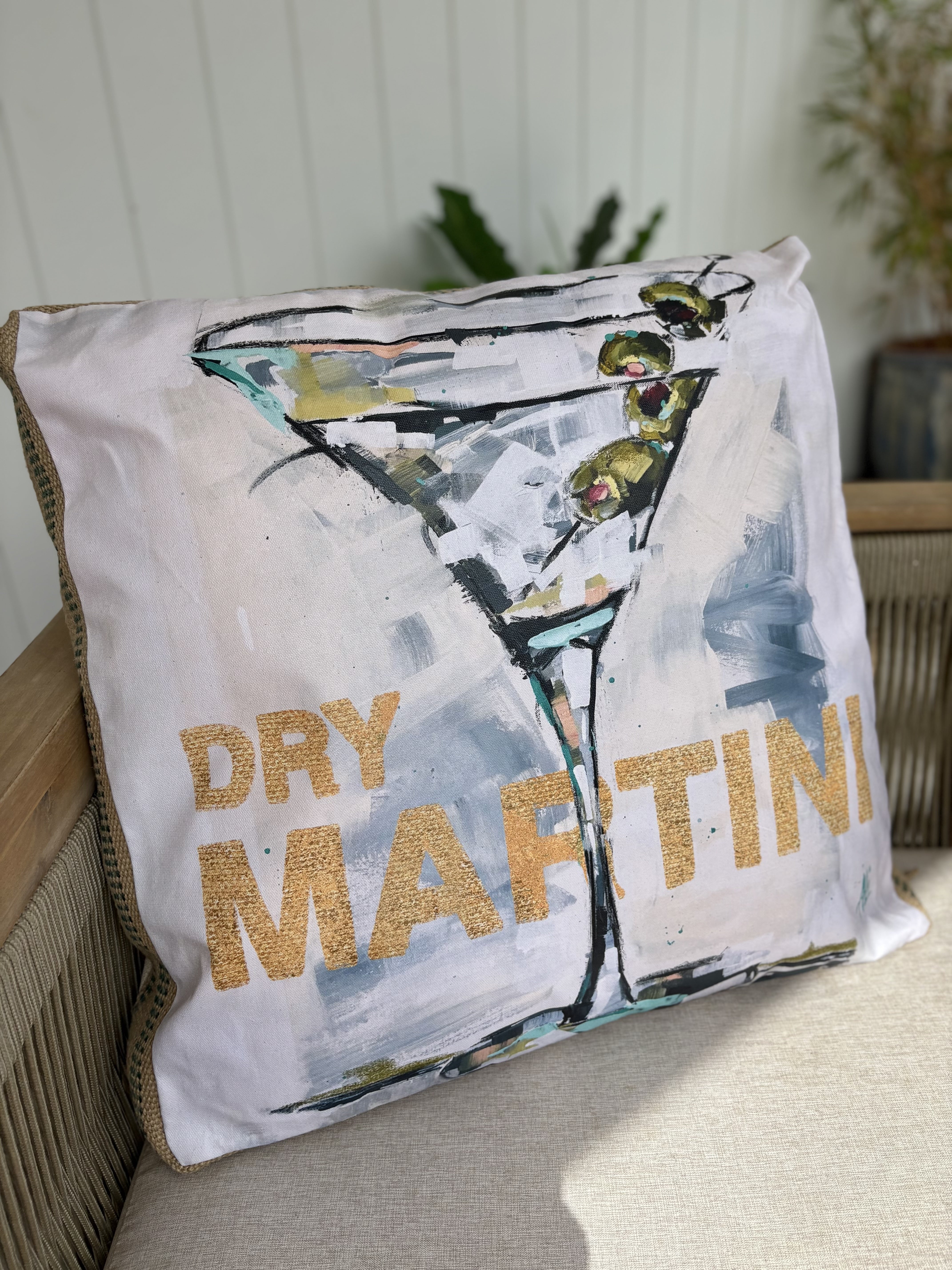 Art Cushion Dry Martini. This stunning canvas art piece has been transformed into a cushion with Burlap Sides. Measures 55 x 55cm these really are way more than a cushion and not only a talking point but a work of art!