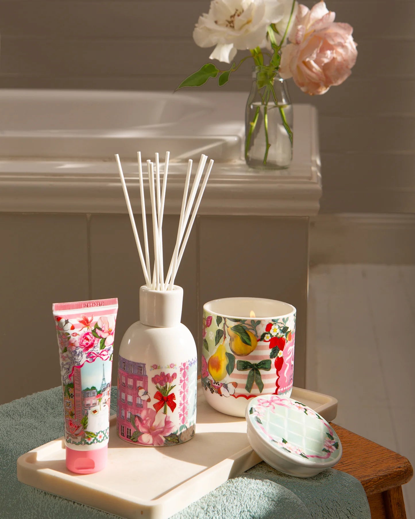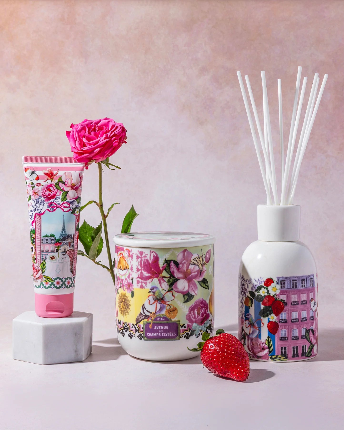 Immerse yourself in the romance of Je T’aime Paris, where the charm of Parisian mornings comes alive with fresh bergamot and mandarin. A heart of delicate rose, magnolia, and jasmine blossoms like the city’s enchanting gardens, while warm notes of woody amber and vanilla evoke the decadence of French patisseries. Together, this exquisite fragrance transports you straight to the heart of Paris.