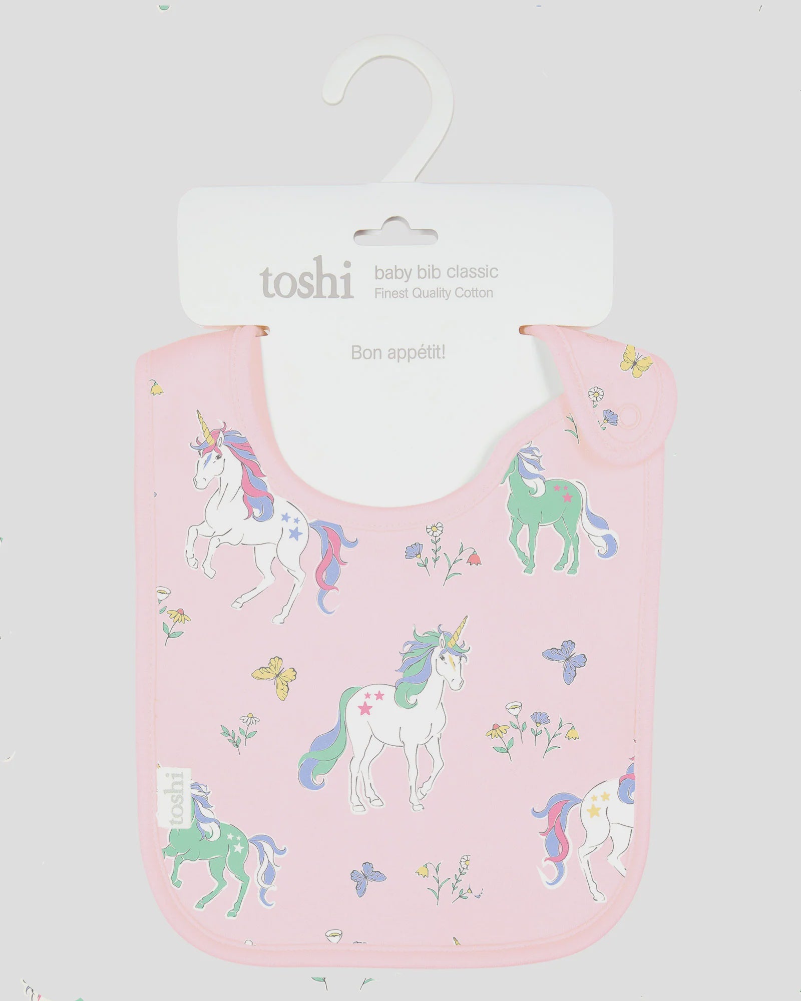 The Toshi Baby Bib is of the finest quality 100% cotton knit. An original and exclusive Toshi design is featured. Presented harmoniously with this is the Unicorn certified 100% organic cotton bib. The bib have absorbent cotton padding on the reverse for moisture protection. Conveniently located press studs create adjustable sizing. Toshi bibs are functional, versatile and gentle on delicate skin.
