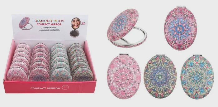 Add a touch of glamour to your daily routine with this elegant Oval Compact Mirror — perfectly sized at 7x9x2.5cm for your handbag or pocket. Featuring dazzling bling diamond patterns, it’s the ultimate blend of chic and practical.