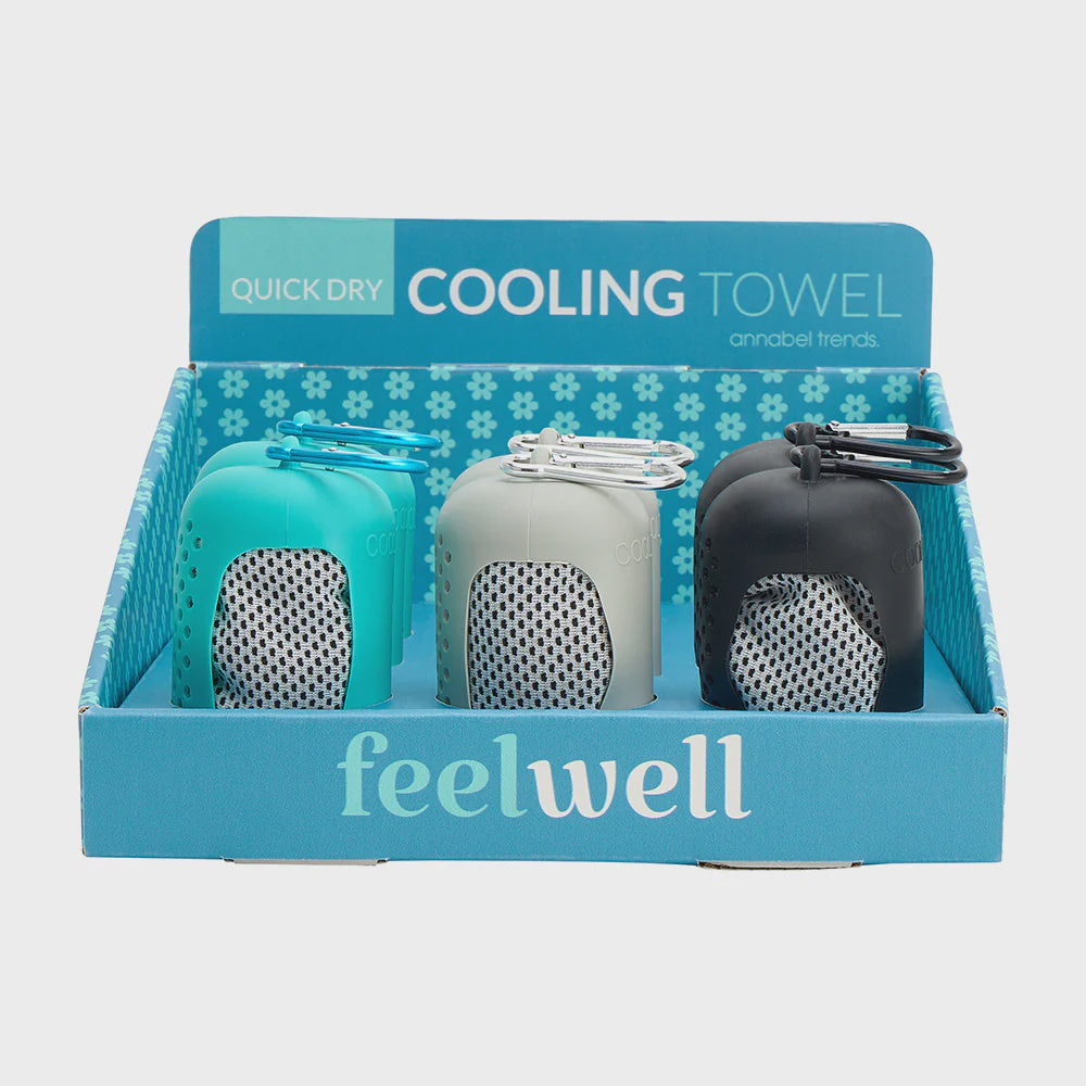 Lightweight, ultra-absorbent, and convenient - these cooling towels are a must-have for active lifestyles. Crafted with breathable polyester and easily activated by water, they're perfect for the gym, sports, outdoors, or even as a remedy for a pesky fever. Simply wet, wring out and hang around your neck to keep cool. Don't leave home without one! Counter Pack of 12. Measures 30x70cm.