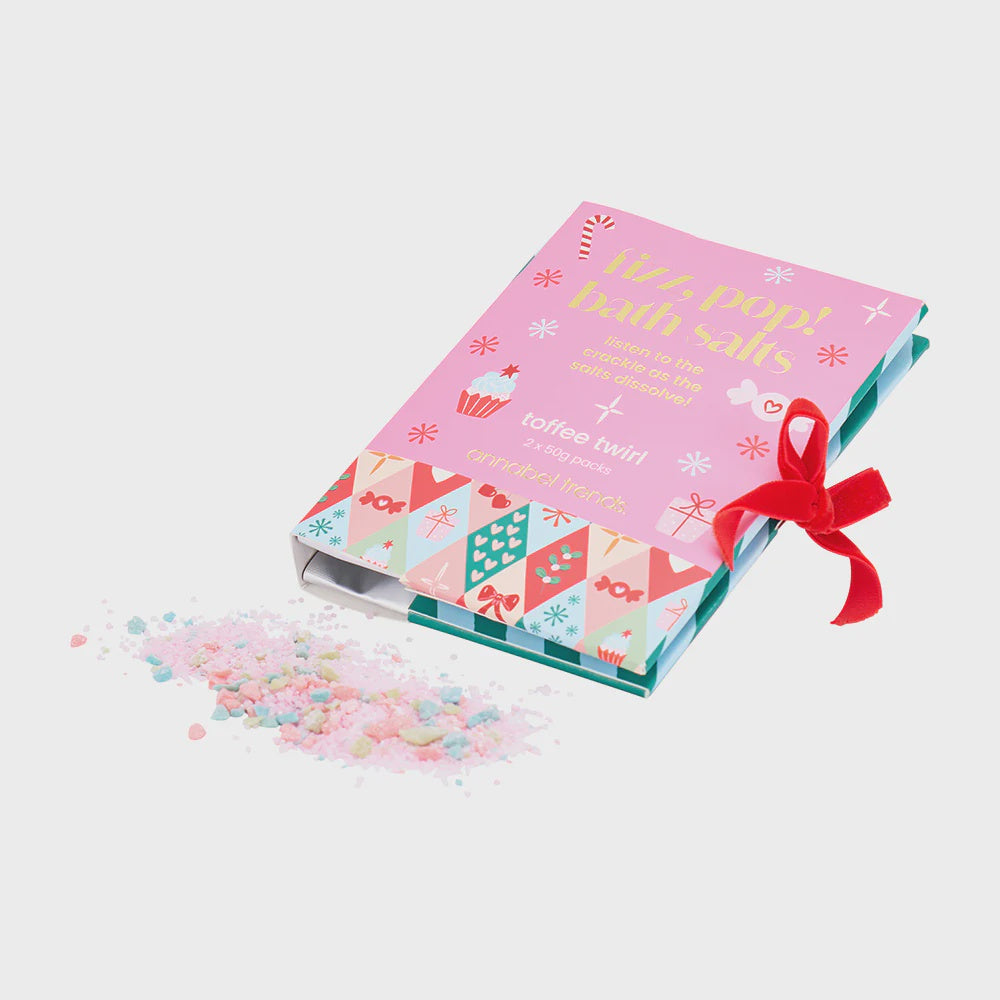 Let your ears delight in the crackling sounds as these festive bath salts dissolve! These toffee-scented salts are sure to be a hit with both children and adults, creating a fun and popping sensation in the bath. Enriched with aloe vera and cacao butter, they'll leave your skin soft and nourished.
