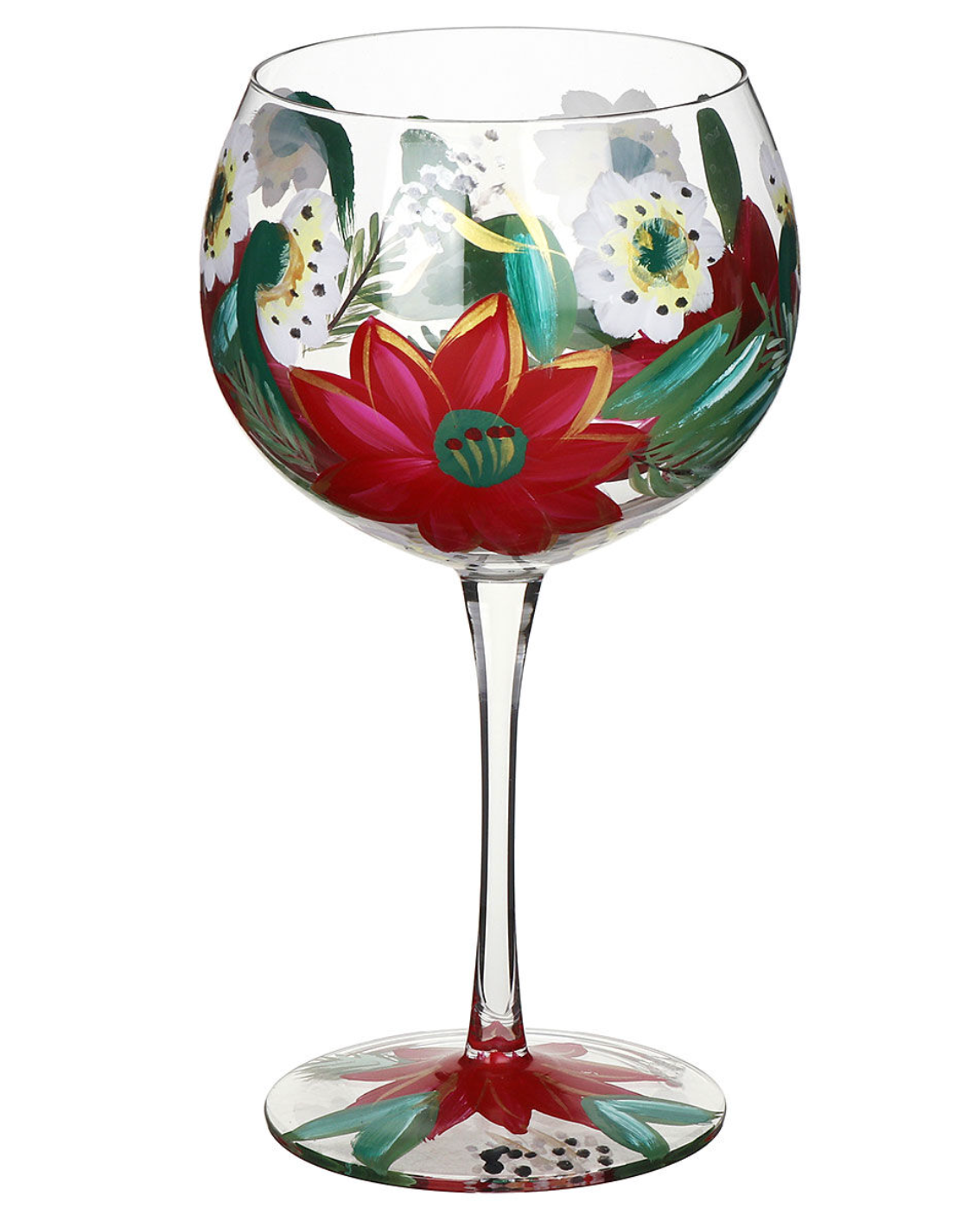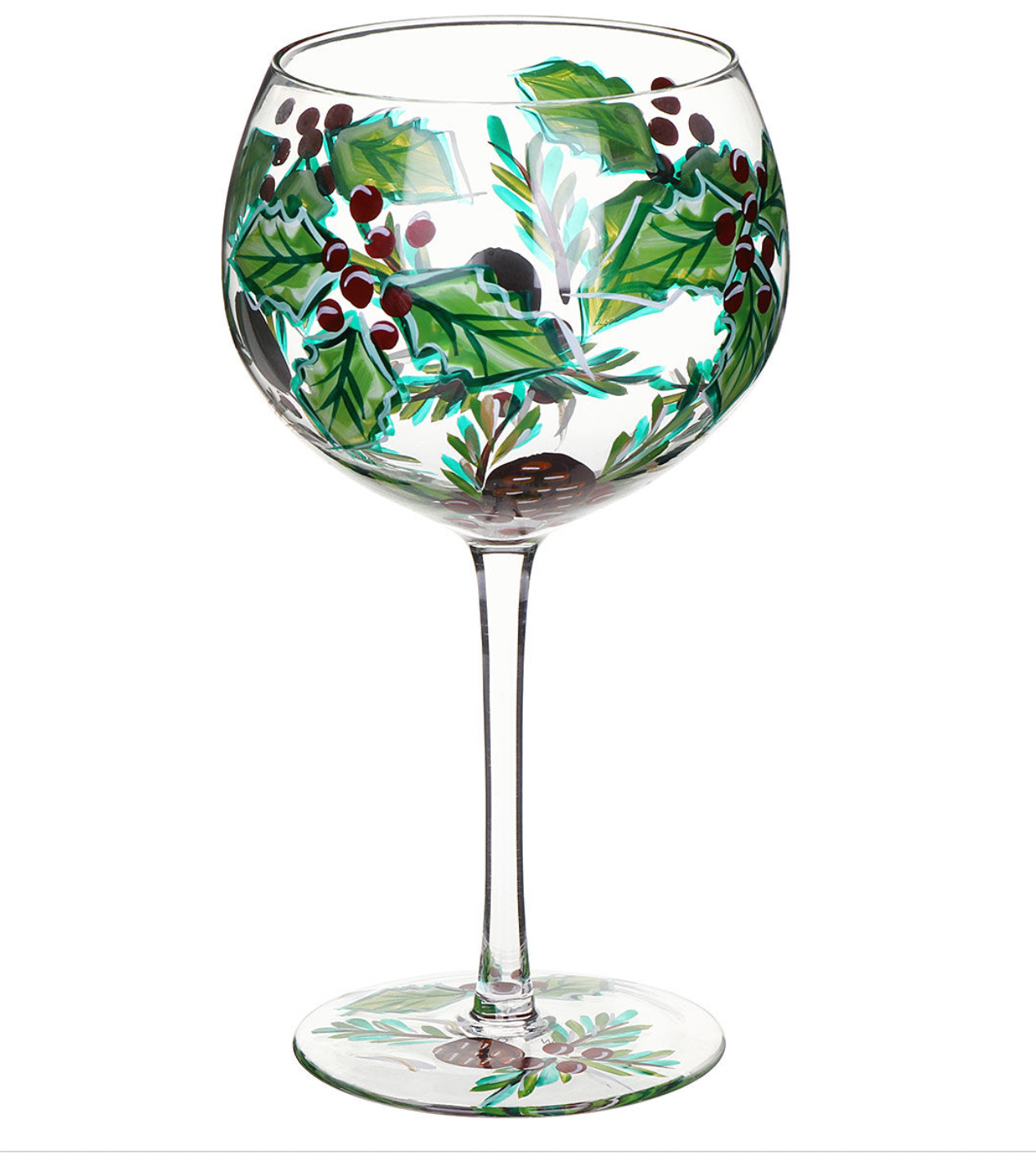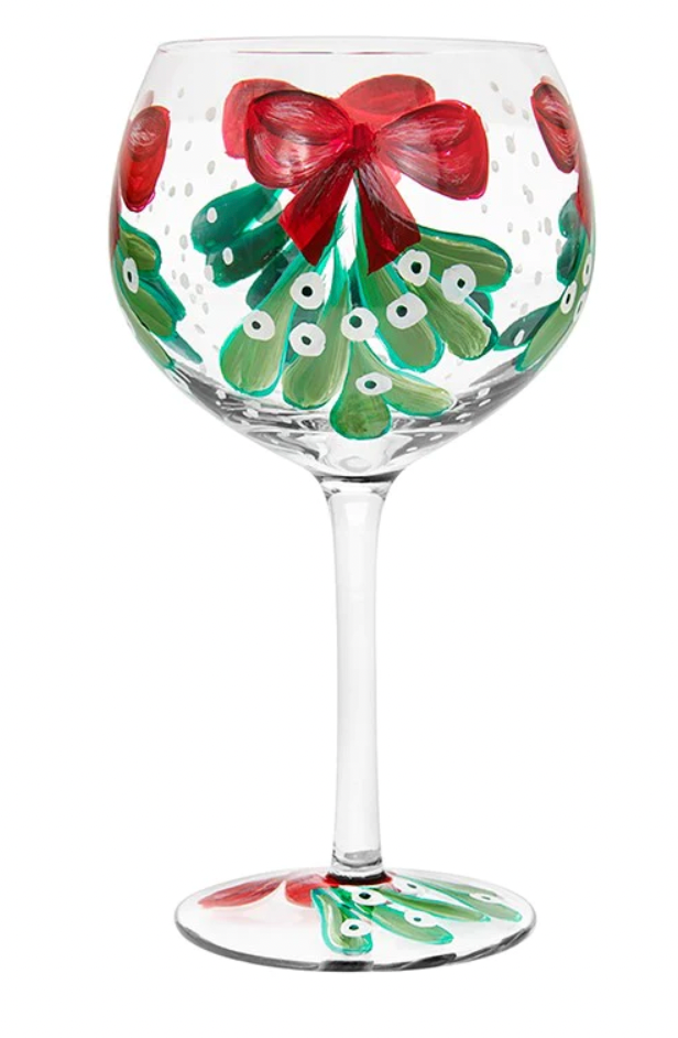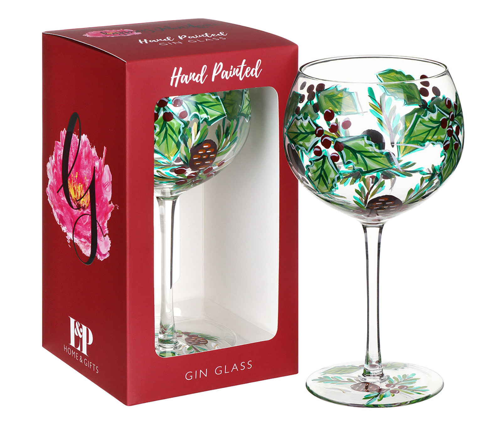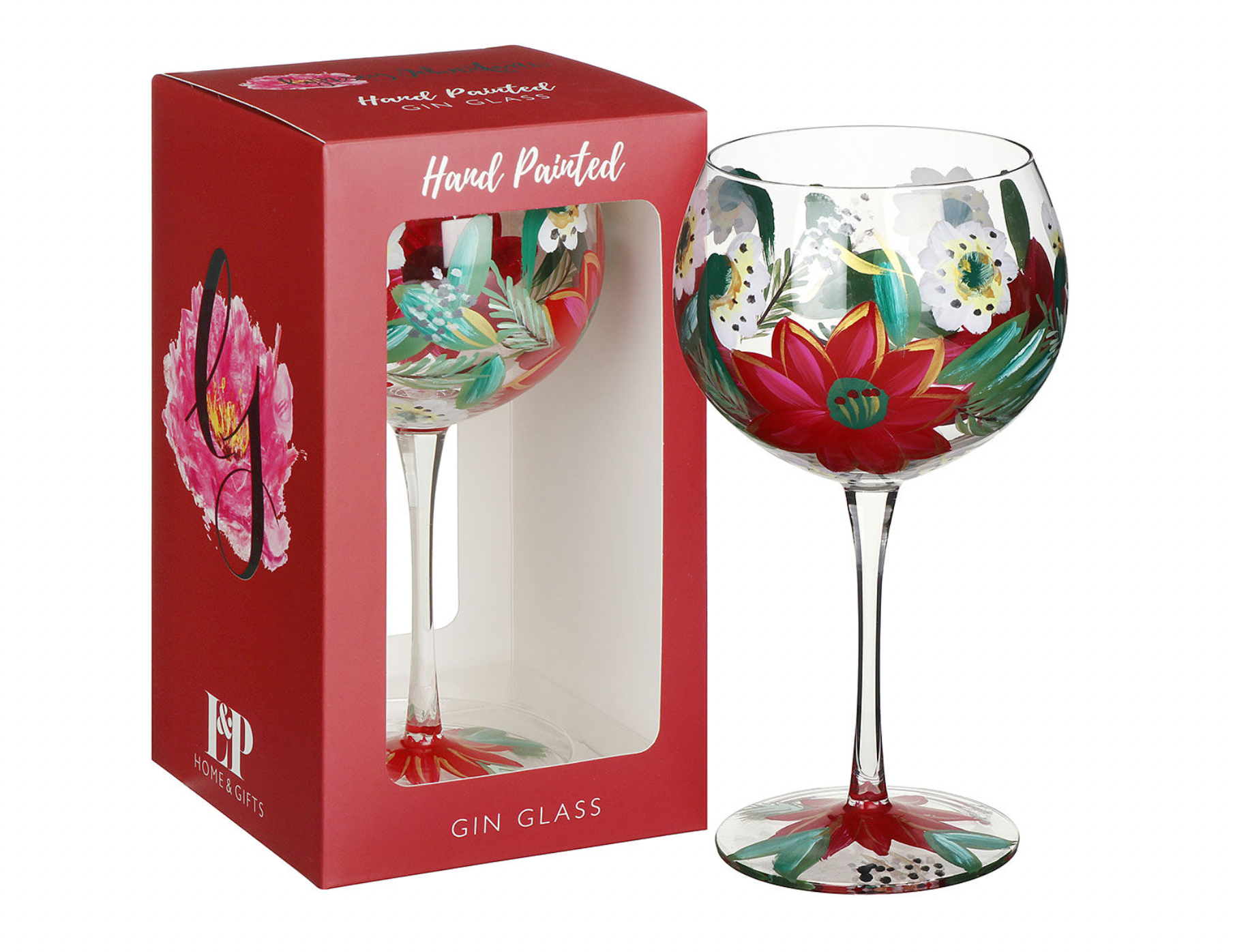 These pretty hand painted Gin glasses are adorned with festive flowers, mistletoe and ribbon perfect for a Christmas tipple or dessert. Both the bowl of the glass and the base are covered in this beautiful design giving it that extra attention to detail.