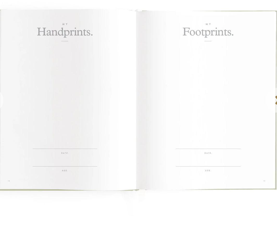 175 x 218mm (15mm spine) / 8.5 x 6.9 inches (0.59 inch spine). Gold foil stamped sage linen cover. White grosgrain ribbon. 2mm foil stamped hard cover, lay-flat binding. Gold foil end pages and premium 115gsm FCS-certified acid-free paper. Packaged in a cello sleeve with gold foil bellyband. Designed in Australia, printed in China.