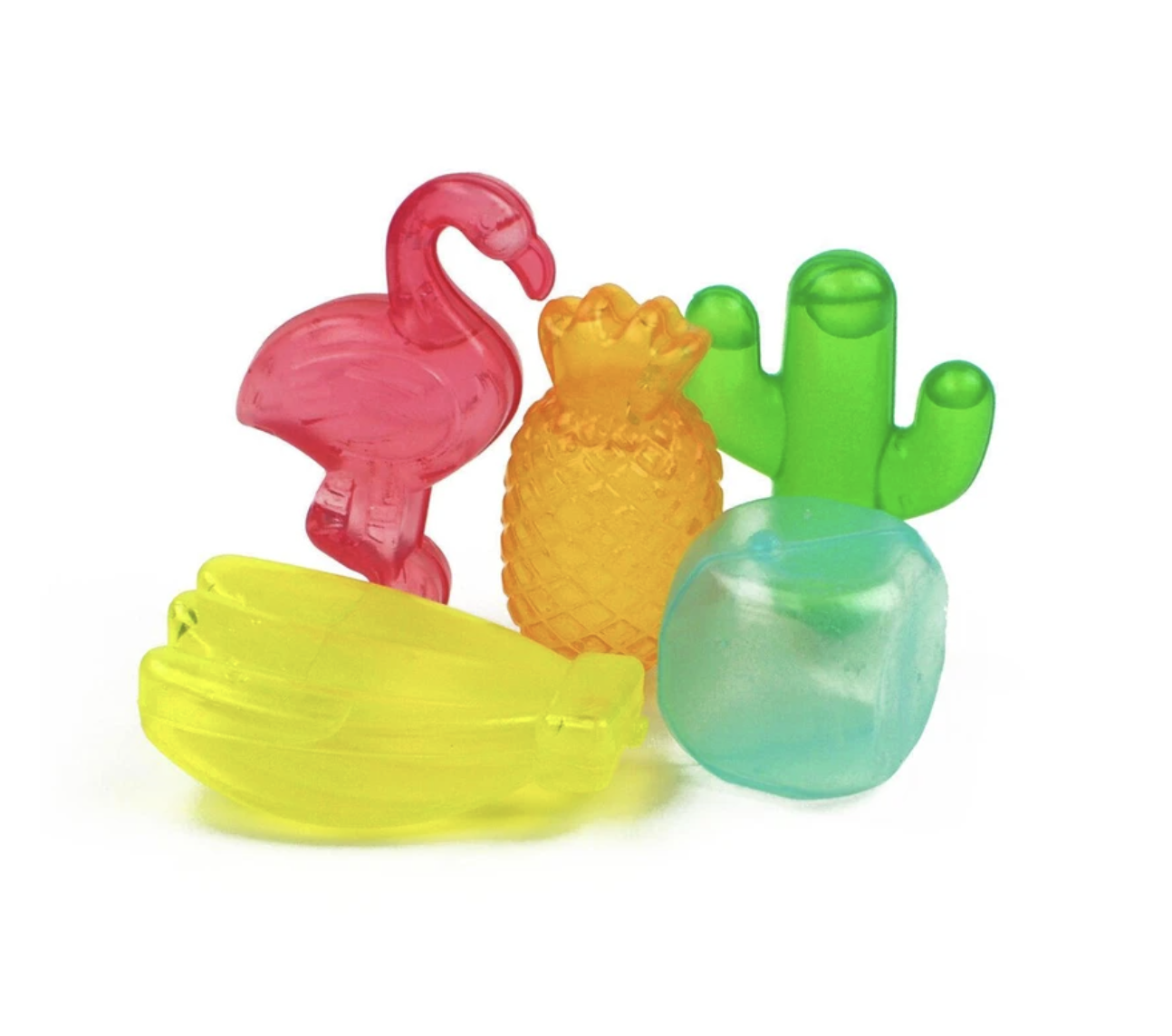 Bring the party inside your glass and stay refreshed with Club Tropicana Reusable Ice Cubes. With their bright colours and tropical shapes, the 16 pieces made of plastic are pre-filled with water, saving you the hassle of making your own ice cubes and diluting your homemade cocktail as they melt.