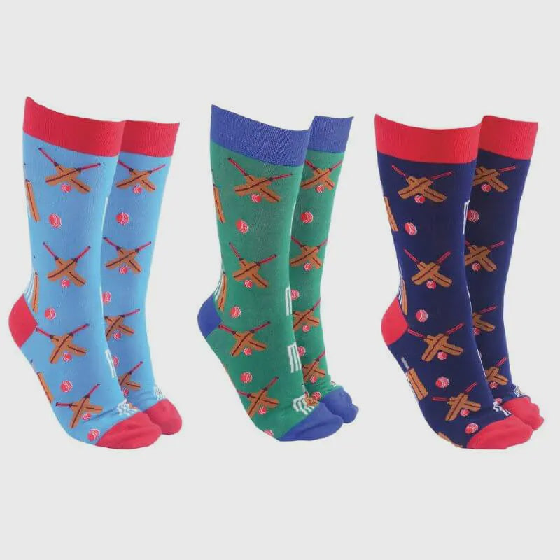 Hit fashion for six with these wicket-fun Sock Society socks! Featuring classic cricket-themed prints — think bats, balls, and stumps — they’re perfect for lovers of long innings, lazy summer matches, and backyard cricket battles.