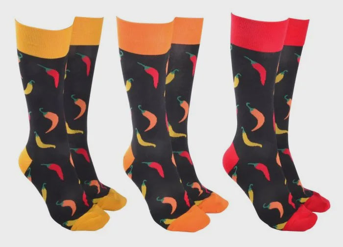 Spice up your sock game with these fiery Sock Society socks featuring bold and bright chilli peppers! Perfect for those who like it hot — whether you’re a spice lover, a foodie, or just want to add some serious sizzle to your step.
