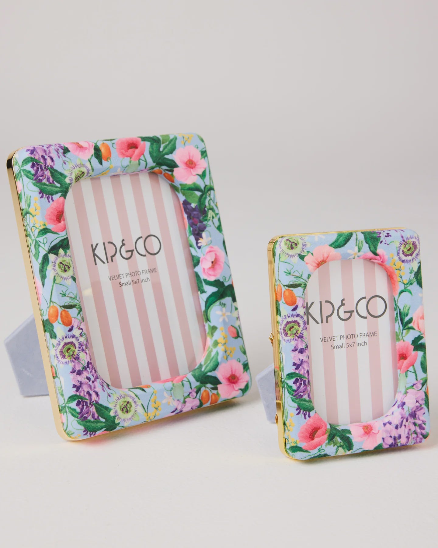 Frame your faves in something a little extra! Our Spring In The Air Oval Velvet Photo Frame turns treasured moments into mini works of art, wrapped in lush, touchable velvet for that hint of fancy. Whether it’s a snap of your loved ones, your pet, or that one perfect holiday pic, this frame brings a pop of colour, texture, and fun to shelves, dressers or bedside tables. This dimensional beauty features a stunning mix of springtime florals and fresh fruits on a soft light blue base with an oval window frame.