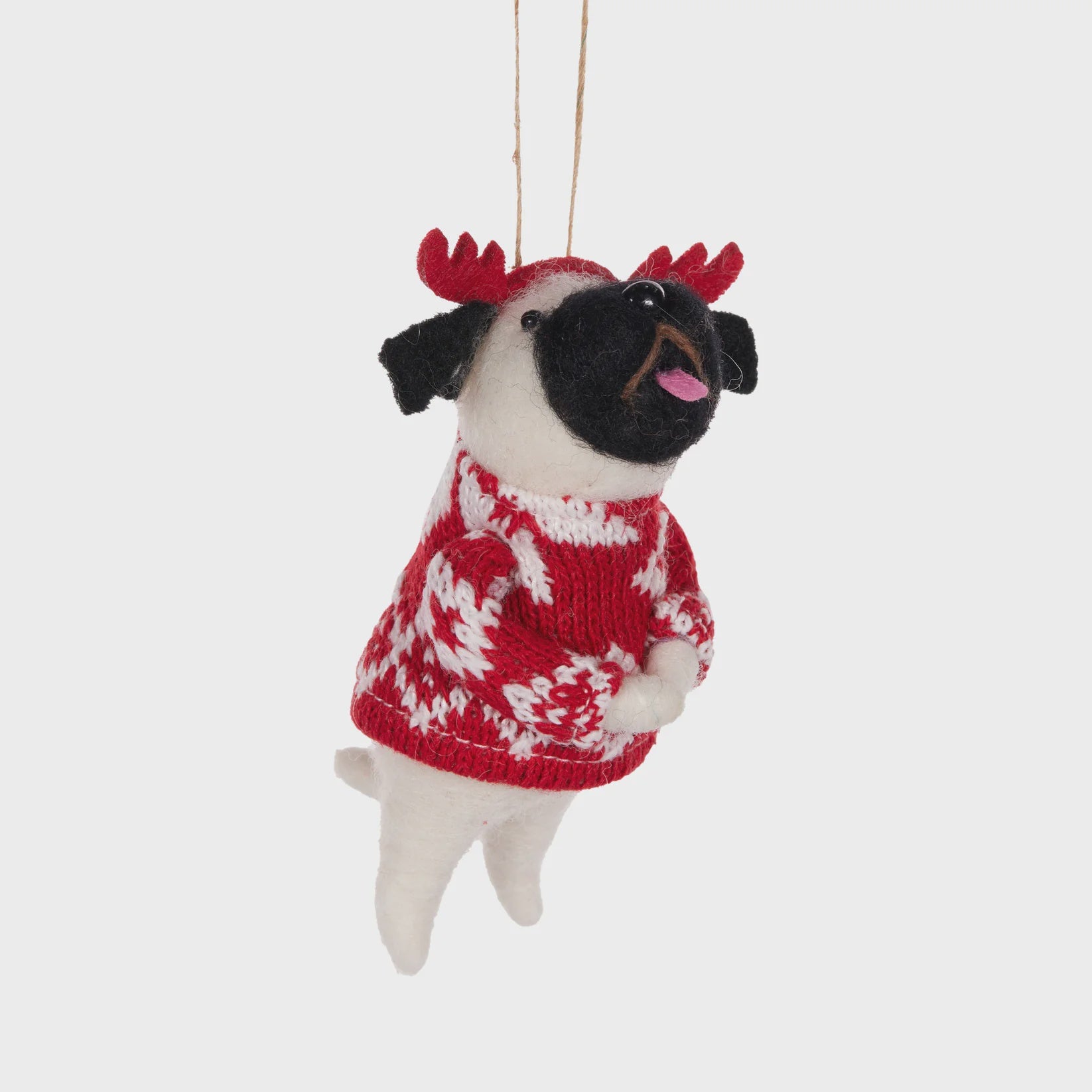 Wool Bulldog with Christmas Antlers Christmas Decoration